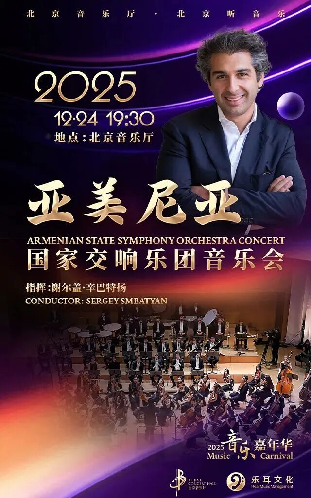 来自高加索山脉下的传奇之声:谢尔盖·辛巴特扬与亚美尼亚国家交响乐团将在12月24日登上北京音乐厅的舞台,为您拉开新年的欢乐序幕!从哈恰图良的假面舞会圆舞曲到柴可夫斯基的胡桃夹子,从充满欧洲风格的匈牙利舞曲到极具东方韵律的春节序曲,将为您开启荟萃东西经典的音乐之旅!