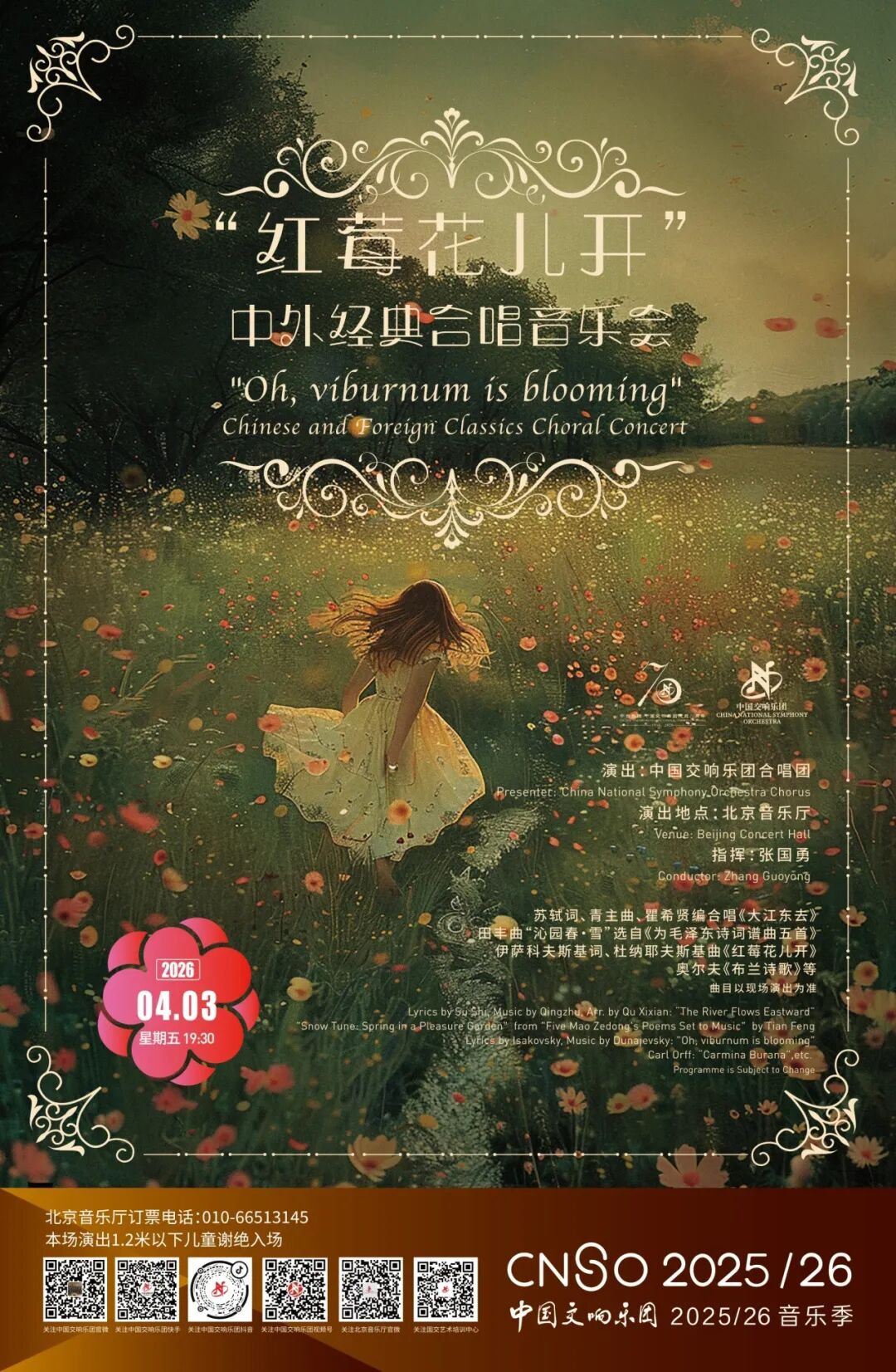 当《红莓花儿开》的旋律轻轻漫起,时光便染上了一层温柔的底色。这是一场关于相遇的音乐会——民族情怀与歌剧戏剧在此交汇,歌声如潮汐,在历史与当下之间起伏。著名指挥家张国勇将执棒中国交响乐团合唱团,从《大江东去》的千古豪迈,到《饮酒歌》的炽热欢宴,从《雪花》的纯净低语,到《布兰诗歌》的命运叩问,上半场以混声、男声、女声编织色彩斑斓的声景,下半场则以双钢琴的极简笔触勾勒奥尔夫笔下的原始力量。