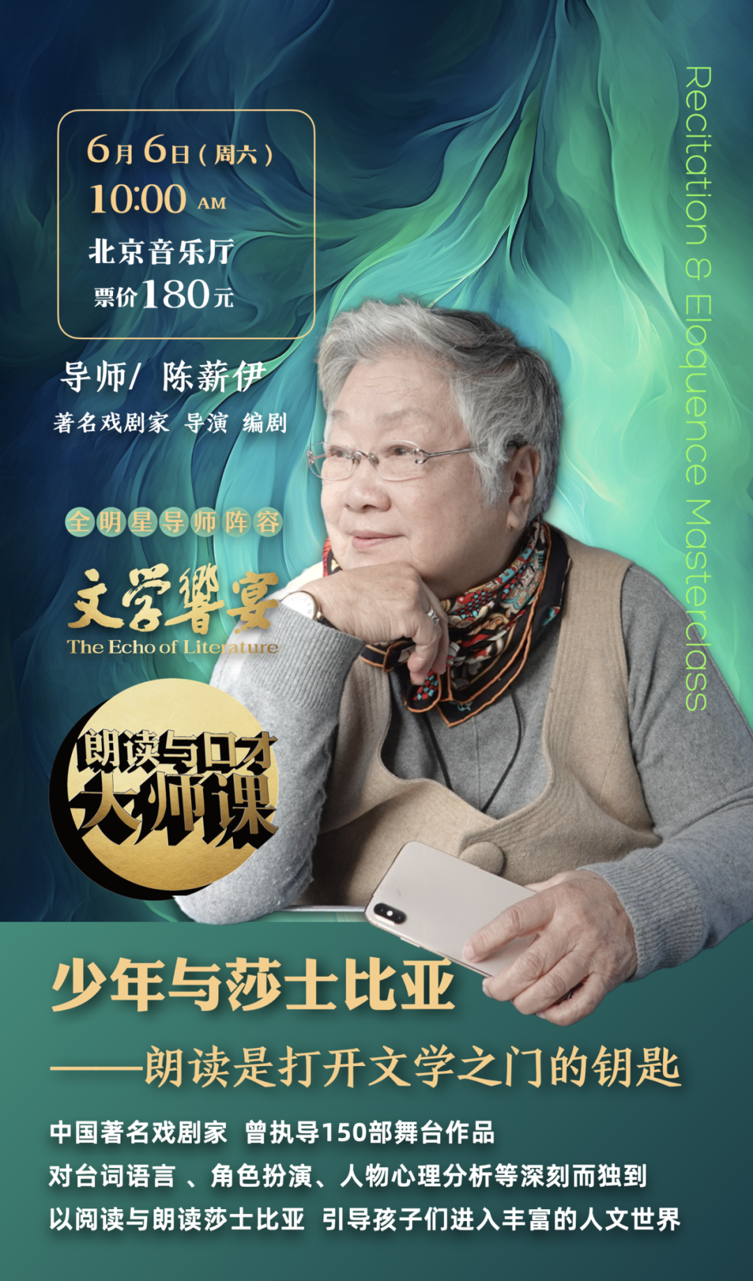 而有声语言艺术家们的加入,为课程增添了另一重维度。李立宏——《舌尖上的中国》御用旁白——将带领观众“听见不一样的世界”;而为《甄嬛传》《芈月传》等众多影视剧配音的季冠霖将首次揭秘声音的魔法;最后收官的导师,是将一生奉献给戏剧的陈薪伊导演,她将以“少年莎士比亚”为题,阐明“朗读是打开文学的秘钥”,为整个系列画上一个厚重而开放的句号。