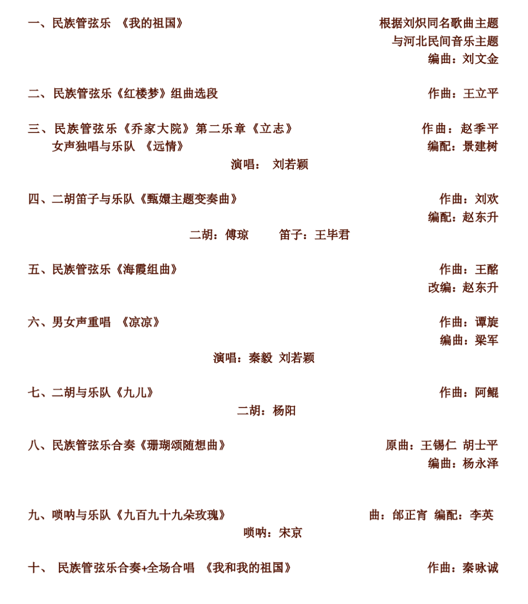 曲目和演出顺序以当天为准
