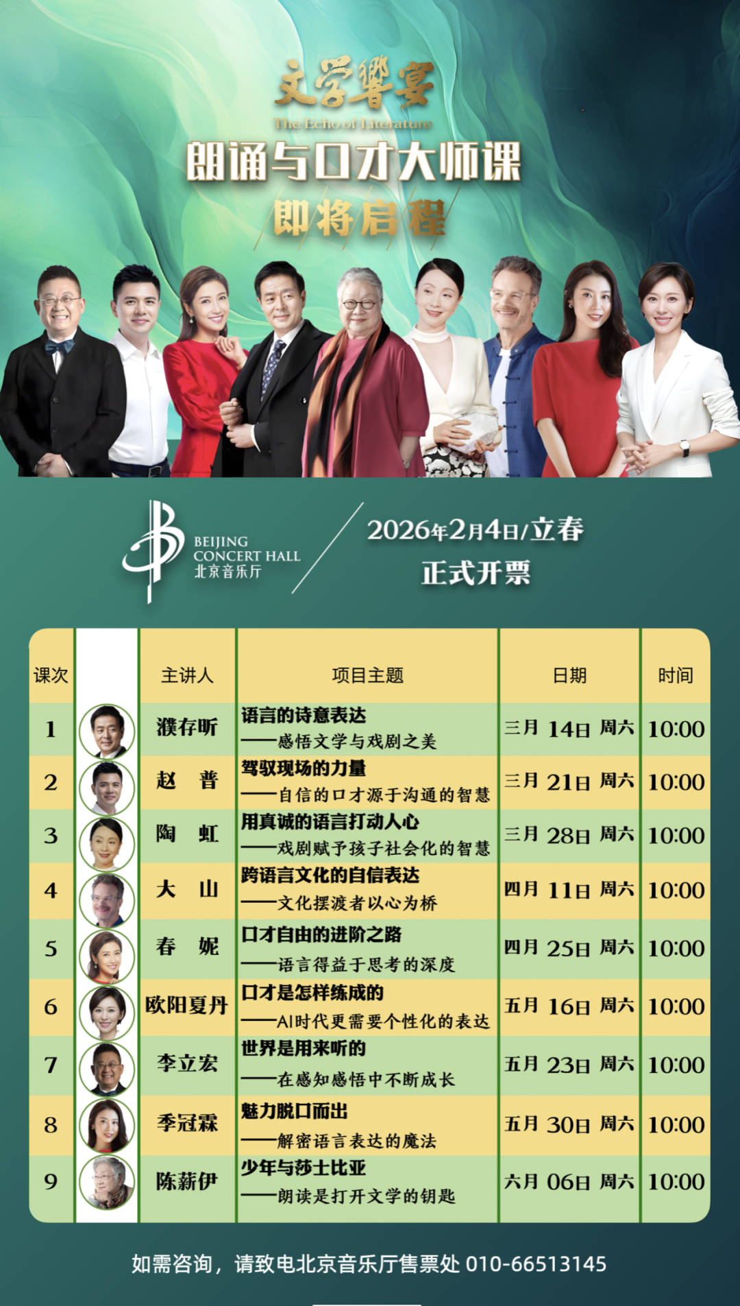 如需咨询演出事宜,欢迎致电北京音乐厅售票处 010-66513145(演出日工作时间13:00-20:00)。